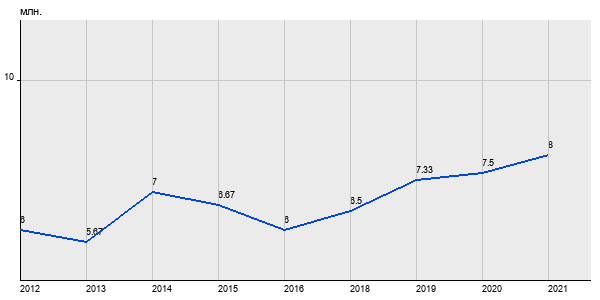 6 млн. руб, а в 2021 году - 8 млн. руб. Таким образом, средняя стоимость двухкомнатных квартир в районе "Головинский" за