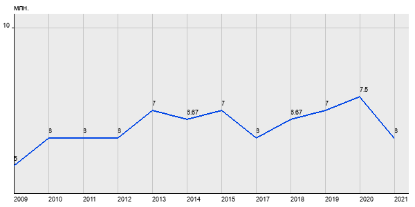 5 млн. руб, а в 2021 году - 6 млн. руб. Таким образом, средняя стоимость двухкомнатных квартир в районе "Бирюлёво Западное" за