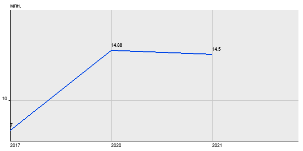 7 млн. руб, а в 2021 году - 14.5 млн. руб. Таким образом, средняя стоимость четырёхкомнатных квартир в районе "Очаково-Матвеевское" за