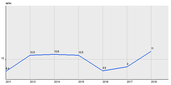 8.4 млн. руб, а в 2019 году - 11 млн. руб. Таким образом, средняя стоимость двухкомнатных квартир в районе "Гагаринский" за