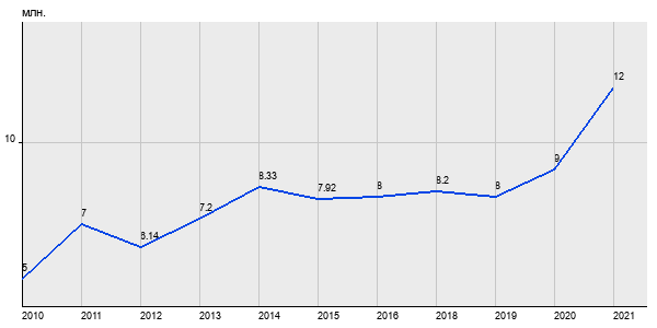 5 млн. руб, а в 2021 году - 12 млн. руб. Таким образом, средняя стоимость двухкомнатных квартир в районе "Беговой" за