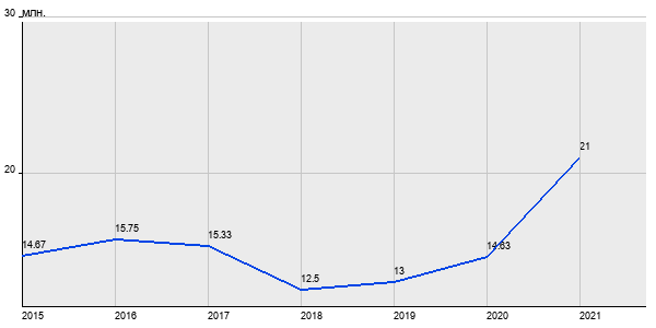 14.67 млн. руб, а в 2021 году - 21 млн. руб. Таким образом, средняя стоимость двухкомнатных квартир в районе "Щукино" за