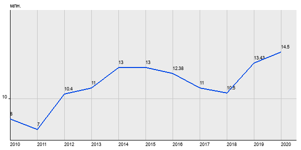 8 млн. руб, а в 2020 году - 14.5 млн. руб. Таким образом, средняя стоимость трёхкомнатных квартир в районе "Даниловский" за