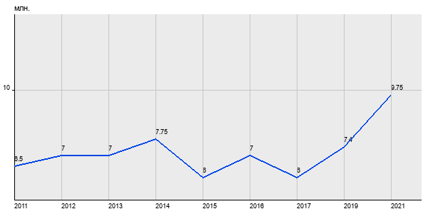6.5 млн. руб, а в 2021 году - 9.75 млн. руб. Таким образом, средняя стоимость двухкомнатных квартир в районе "Бибирево" за