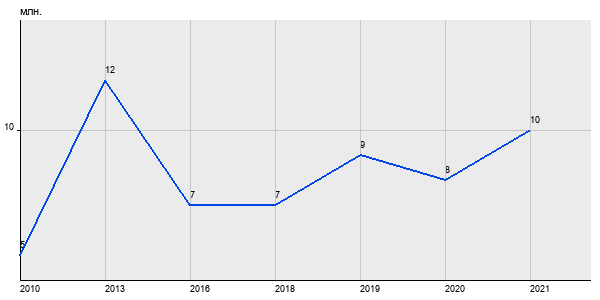 5 млн. руб, а в 2021 году - 10 млн. руб. Таким образом, средняя стоимость двухкомнатных квартир в районе "Савёловский" за