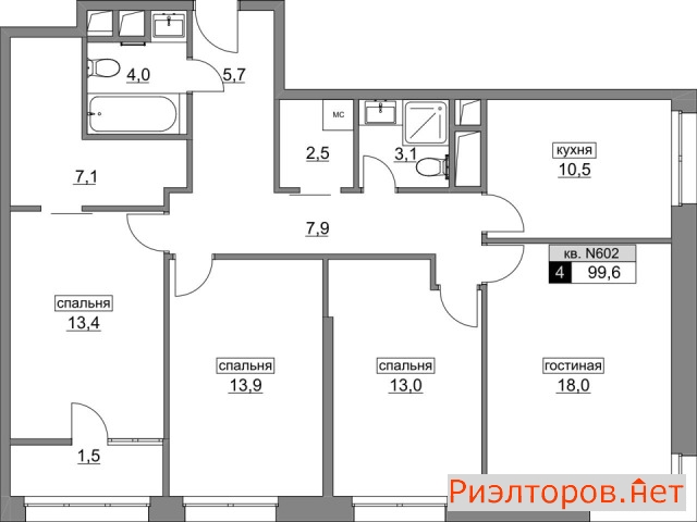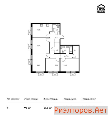 Рыночная стоимость квартиры: 13,050 млн руб.