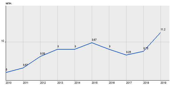 6 млн. руб, а в 2019 году - 11.2 млн. руб. Таким образом, средняя стоимость однокомнатных квартир в районе "Раменки" за