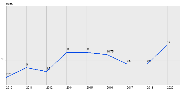 7.75 млн. руб, а в 2020 году - 12 млн. руб. Таким образом, средняя стоимость двухкомнатных квартир в районе "Мещанский" за