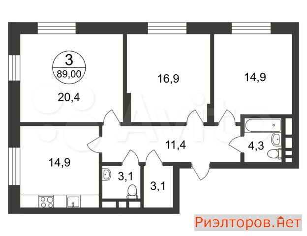 Квартира 3-к. 81.4 м2