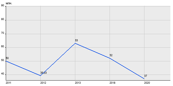 50 млн. руб, а в 2020 году - 37 млн. руб. Таким образом, средняя стоимость четырёхкомнатных квартир в районе "Басманный" за
