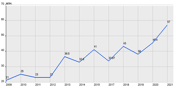 21 млн. руб, а в 2021 году - 57 млн. руб. Таким образом, средняя стоимость трёхкомнатных квартир в районе "Арбат" за