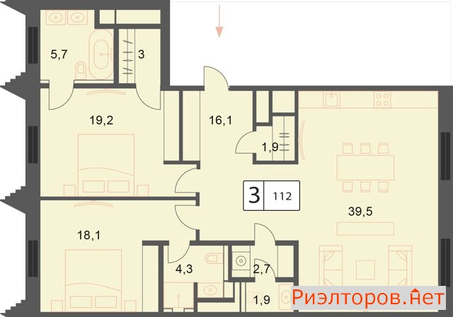 Рыночная стоимость квартиры: 101,890 млн руб.
