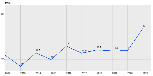 11 млн. руб, а в 2021 году - 17 млн. руб. Таким образом, средняя стоимость трёхкомнатных квартир в районе "Митино" за