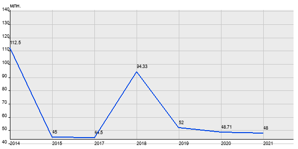 112.5 млн. руб, а в 2021 году - 48 млн. руб. Таким образом, средняя стоимость четырёхкомнатных квартир в районе "Проспект Вернадского" за