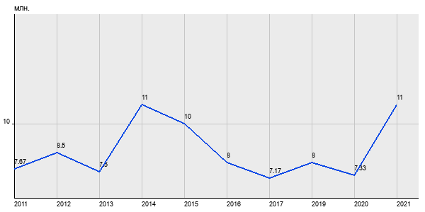 7.67 млн. руб, а в 2021 году - 11 млн. руб. Таким образом, средняя стоимость трёхкомнатных квартир в районе "Зюзино" за
