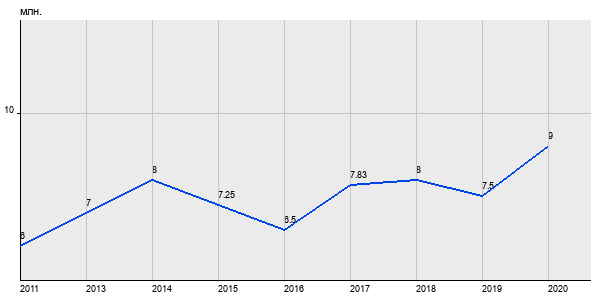 6 млн. руб, а в 2020 году - 9 млн. руб. Таким образом, средняя стоимость двухкомнатных квартир в районе "Аэропорт" за