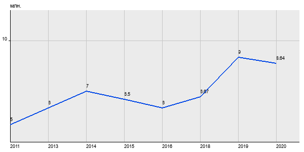 5 млн. руб, а в 2020 году - 8.64 млн. руб. Таким образом, средняя стоимость двухкомнатных квартир в районе "Северное Тушино" за