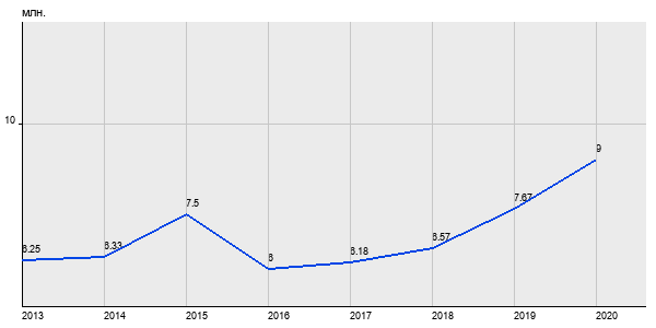 6.25 млн. руб, а в 2020 году - 9 млн. руб. Таким образом, средняя стоимость двухкомнатных квартир в районе "" за