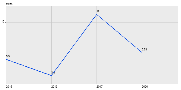 5.5 млн. руб, а в 2020 году - 6.33 млн. руб. Таким образом, средняя стоимость однокомнатных квартир в районе "Можайский" за