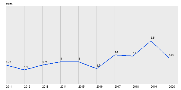 4.75 млн. руб, а в 2020 году - 5.25 млн. руб. Таким образом, средняя стоимость однокомнатных квартир в районе "Бабушкинский" за