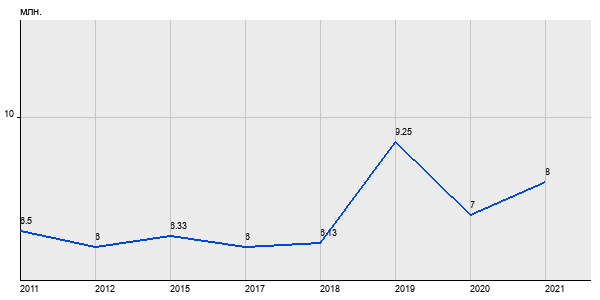 6.5 млн. руб, а в 2021 году - 8 млн. руб. Таким образом, средняя стоимость однокомнатных квартир в районе "" за