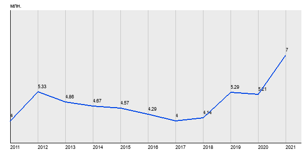 4 млн. руб, а в 2021 году - 7 млн. руб. Таким образом, средняя стоимость однокомнатных квартир в районе "Вешняки" за
