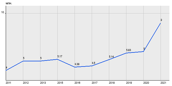 4 млн. руб, а в 2021 году - 9 млн. руб. Таким образом, средняя стоимость однокомнатных квартир в районе "Бескудниковский" за