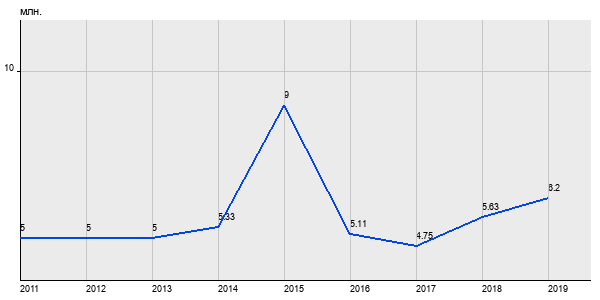 5 млн. руб, а в 2019 году - 6.2 млн. руб. Таким образом, средняя стоимость однокомнатных квартир в районе "Солнцево" за