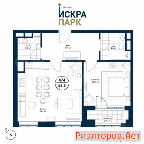 Рыночная стоимость квартиры: 21,420 млн руб.