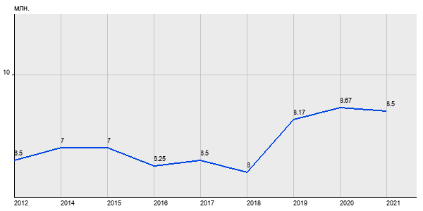 6.5 млн. руб, а в 2021 году - 8.5 млн. руб. Таким образом, средняя стоимость двухкомнатных квартир в районе "Преображенское" за