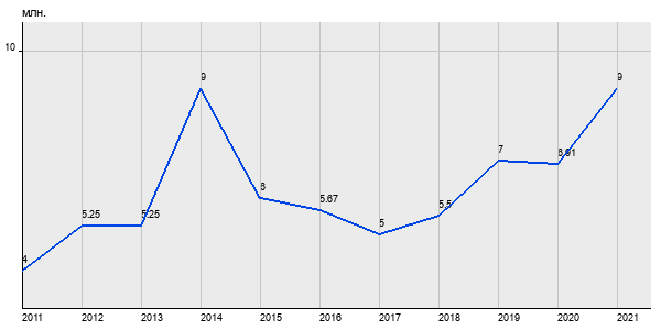 4 млн. руб, а в 2021 году - 9 млн. руб. Таким образом, средняя стоимость однокомнатных квартир в районе "Чертаново Центральное" за