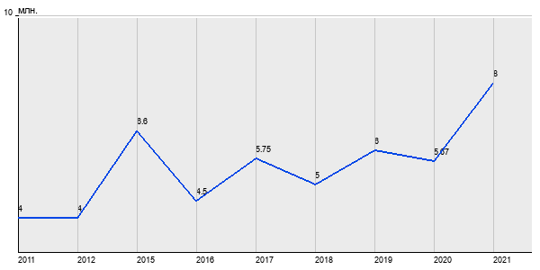 4 млн. руб, а в 2021 году - 8 млн. руб. Таким образом, средняя стоимость однокомнатных квартир в районе "" за