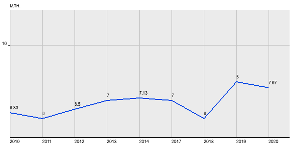 6.33 млн. руб, а в 2020 году - 7.67 млн. руб. Таким образом, средняя стоимость двухкомнатных квартир в районе "Орехово-Борисово Южное" за