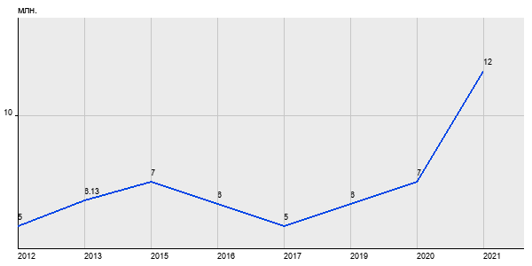 5 млн. руб, а в 2021 году - 12 млн. руб. Таким образом, средняя стоимость однокомнатных квартир в районе "Южнопортовый" за