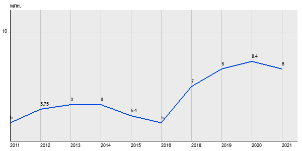 5 млн. руб, а в 2021 году - 8 млн. руб. Таким образом, средняя стоимость двухкомнатных квартир в районе "" за
