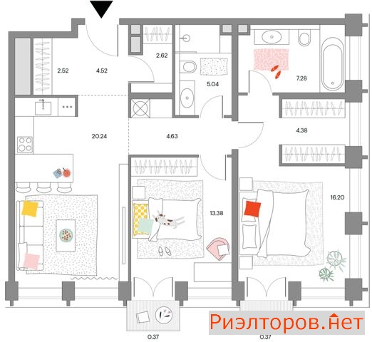 Квартира 3-к. 87.2 м2