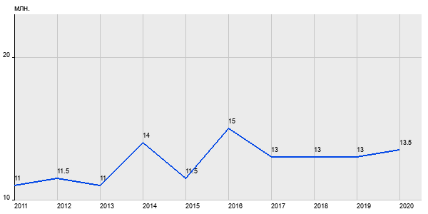 11 млн. руб, а в 2020 году - 13.5 млн. руб. Таким образом, средняя стоимость двухкомнатных квартир в районе "Черёмушки" за