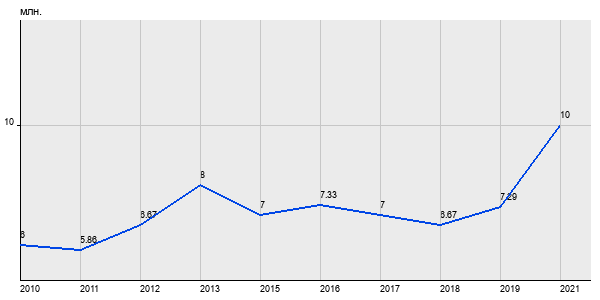 6 млн. руб, а в 2021 году - 10 млн. руб. Таким образом, средняя стоимость двухкомнатных квартир в районе "Бабушкинский" за