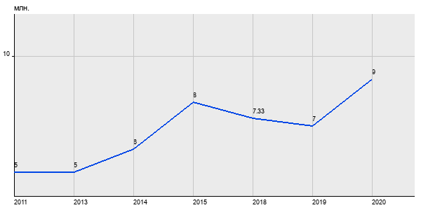 5 млн. руб, а в 2020 году - 9 млн. руб. Таким образом, средняя стоимость двухкомнатных квартир в районе "Коптево" за