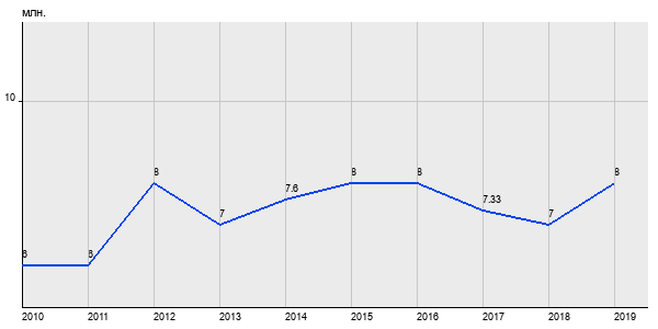 6 млн. руб, а в 2019 году - 8 млн. руб. Таким образом, средняя стоимость двухкомнатных квартир в районе "Зябликово" за