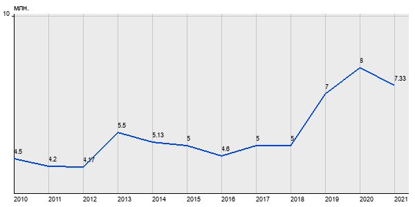 4.5 млн. руб, а в 2021 году - 7.33 млн. руб. Таким образом, средняя стоимость однокомнатных квартир в районе "Царицыно" за