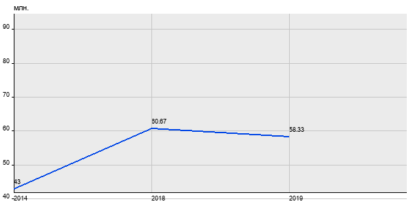 43 млн. руб, а в 2019 году - 58.33 млн. руб. Таким образом, средняя стоимость двухкомнатных квартир в районе "Басманный" за