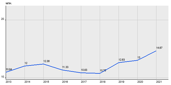 10.94 млн. руб, а в 2021 году - 14.67 млн. руб. Таким образом, средняя стоимость трёхкомнатных квартир в районе "Марьино" за