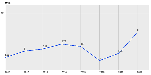 5.33 млн. руб, а в 2019 году - 8 млн. руб. Таким образом, средняя стоимость двухкомнатных квартир в районе "" за