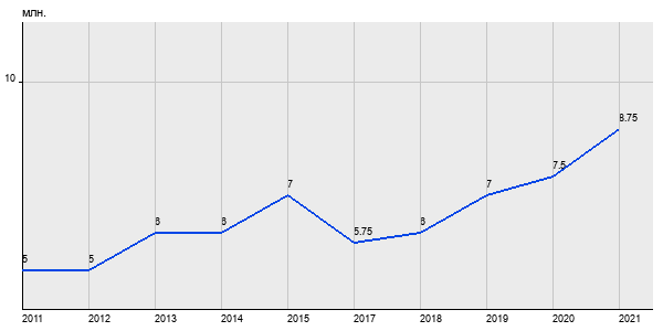 5 млн. руб, а в 2021 году - 8.75 млн. руб. Таким образом, средняя стоимость однокомнатных квартир в районе "Бескудниковский" за