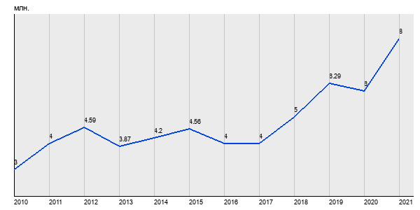 3 млн. руб, а в 2021 году - 8 млн. руб. Таким образом, средняя стоимость однокомнатных квартир в районе "Донской" за