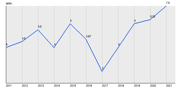 4 млн. руб, а в 2021 году - 7.5 млн. руб. Таким образом, средняя стоимость однокомнатных квартир в районе "Гольяново" за