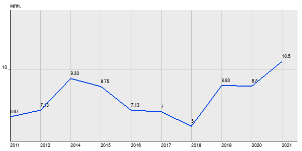 6.67 млн. руб, а в 2021 году - 10.5 млн. руб. Таким образом, средняя стоимость однокомнатных квартир в районе "Черёмушки" за