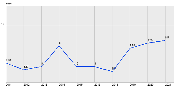 6.33 млн. руб, а в 2021 году - 8.5 млн. руб. Таким образом, средняя стоимость однокомнатных квартир в районе "Котловка" за