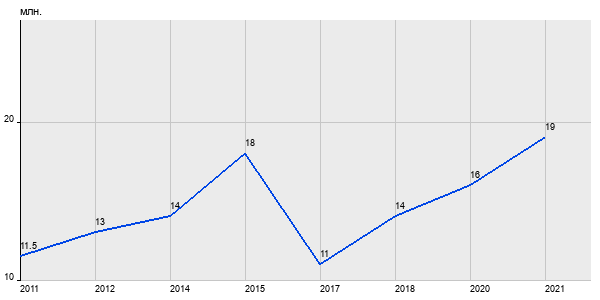 11.5 млн. руб, а в 2021 году - 19 млн. руб. Таким образом, средняя стоимость трёхкомнатных квартир в районе "" за